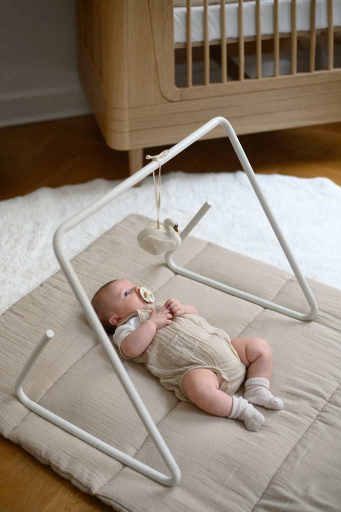 Quiltet legetæppe lavet af blød, økologisk musselin i den rolige farve Clay. Legetæppet er både en smuk og praktisk tilføjelse til baby- eller børneværelset. Legemåtten er designet i Danmark og fremstillet af den blødeste økologiske musselinbomuld.