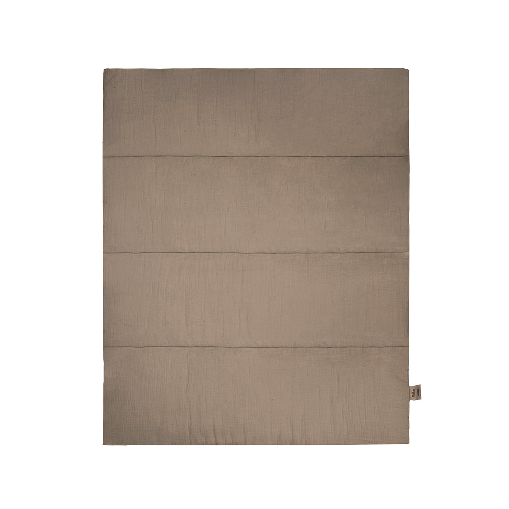Quiltet legetæppe lavet af blød, økologisk musselin i den rolige farve Earth. Legetæppet er både en smuk og praktisk tilføjelse til baby- eller børneværelset. Legemåtten er designet i Danmark og fremstillet af den blødeste økologiske musselinbomuld.