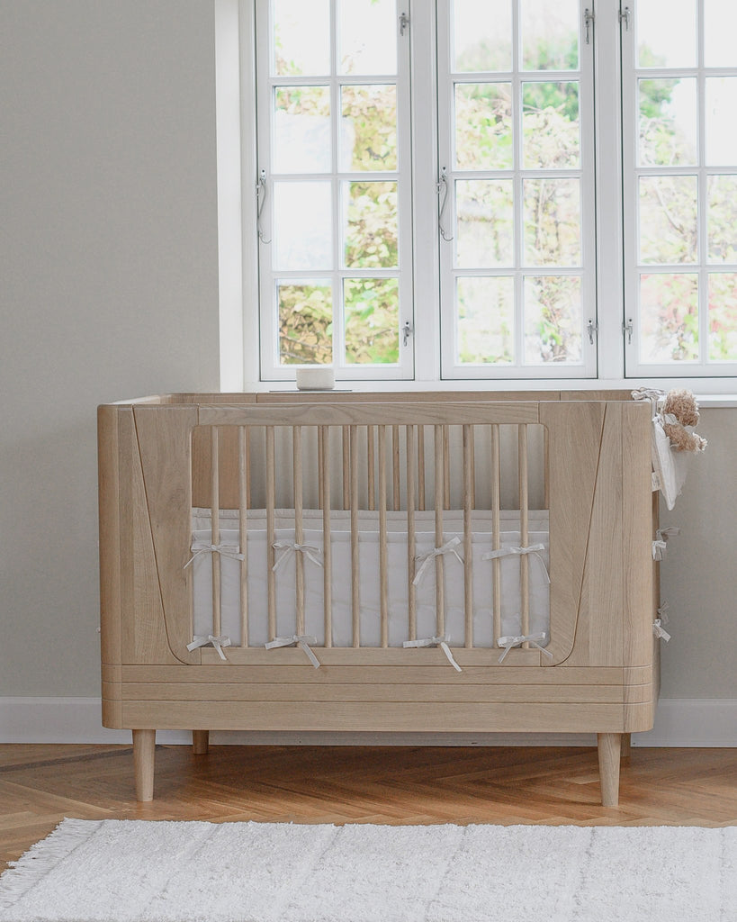 Our bed bumper made from organic cotton is specifically made to fit our Nature Baby Bed. The bed bumper is not just a beautiful addition to the bed but it also protects the baby and creates a cozy and safe sleeping space for the little one.